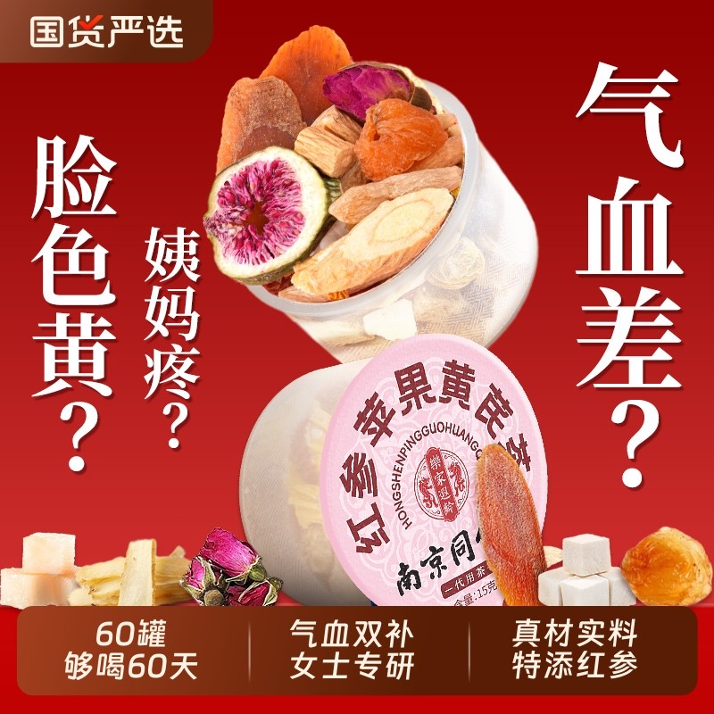 同仁堂红参苹果黄芪水红枣枸杞茶素颜麦冬女人补气养血调理养生茶