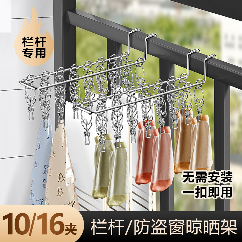 不锈钢袜子晾晒架多夹子家用婴儿袜夹学生宿舍晾衣架阳台防风衣架