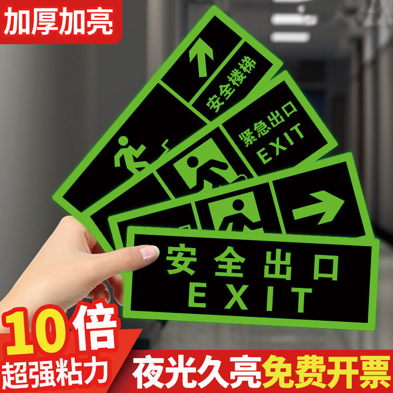 安全出口指示牌夜光楼梯通道地贴墙贴地标应急疏散紧急逃生标志消防消防标识标牌自发光提示贴纸警示字标示贴