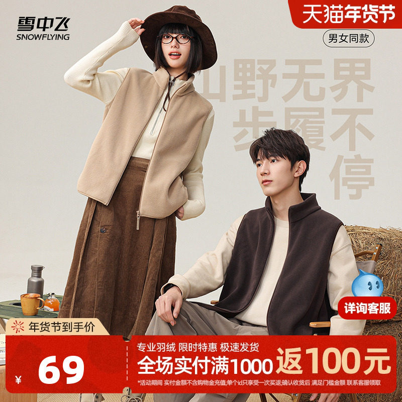 雪中飞2025秋新款男女情侣百搭摇粒绒马甲外套开衫上衣日常休闲