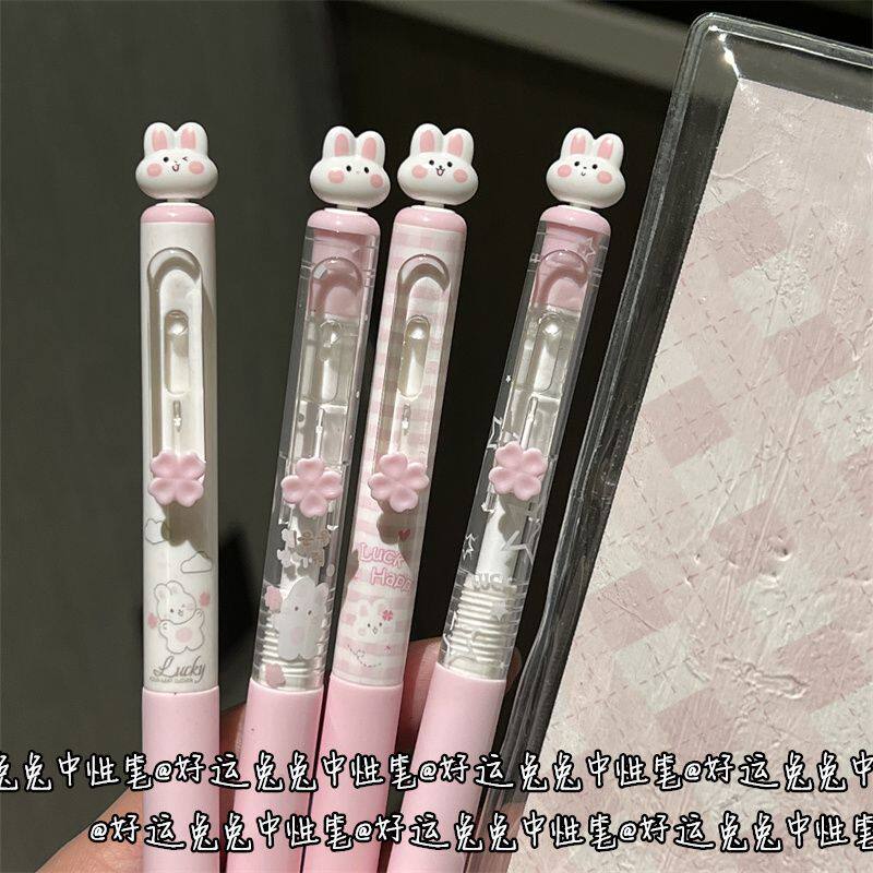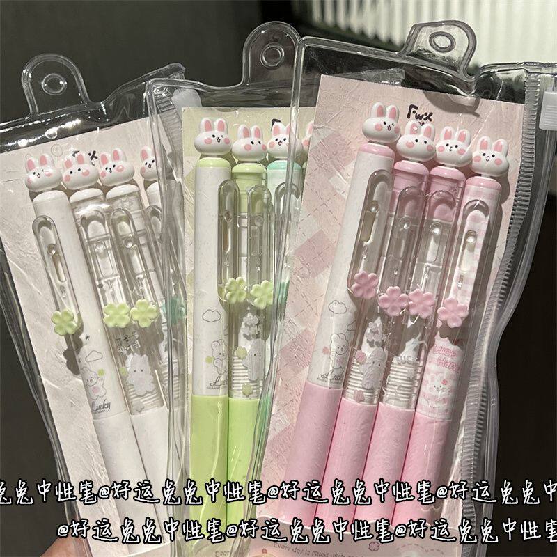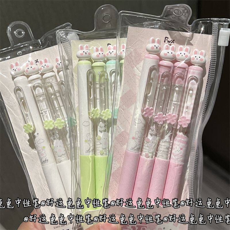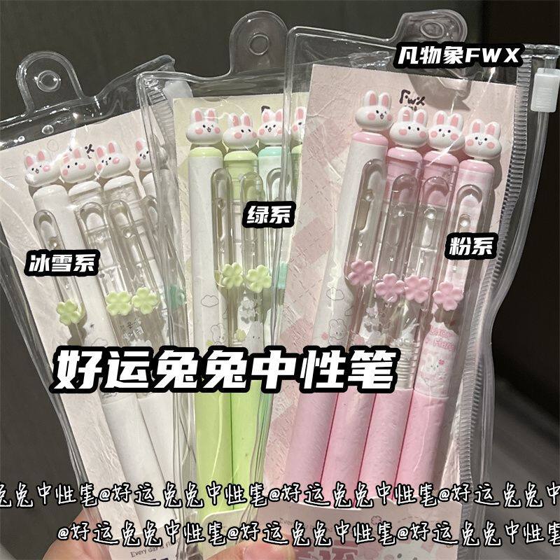 凡物象好运兔兔中性笔可爱学生笔四叶草元素小白兔速干笔学生黑笔