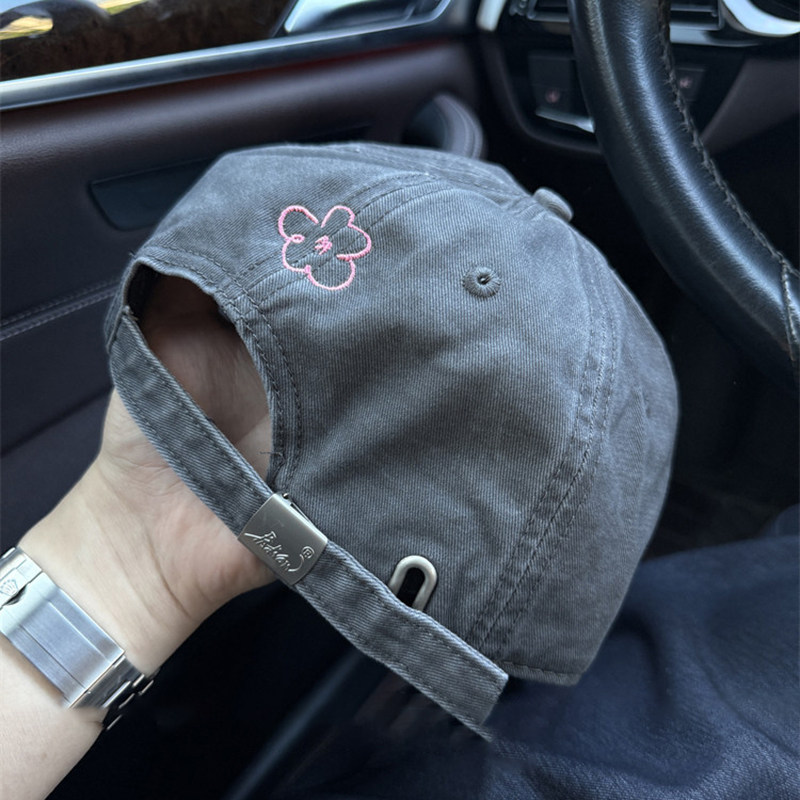 美式复古字母灰色棒球帽女高级感宽檐大头围显脸小百搭鸭舌帽子男