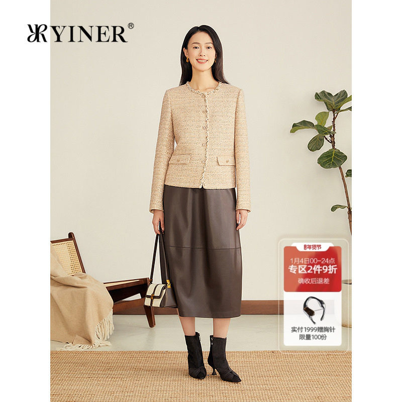 YINER音儿专选2025秋季新款法式小香风羊毛混纺亮丝粗花呢短外套