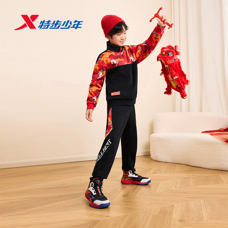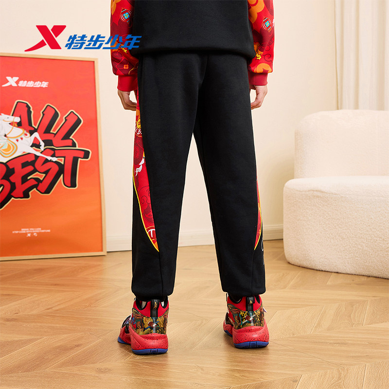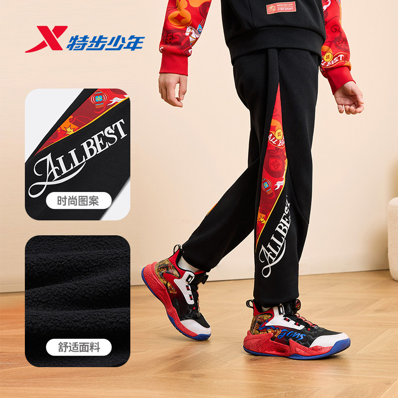 福燈贺岁|特步童装冬季男童女童中大童新年款松紧腰运动针织长裤