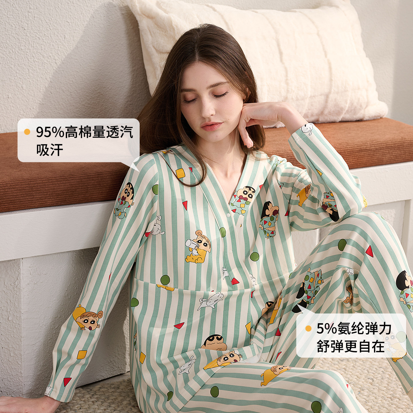 雅特茂&蜡笔小新联名月子服春夏产后孕妇产妇哺乳睡衣孕期家居服