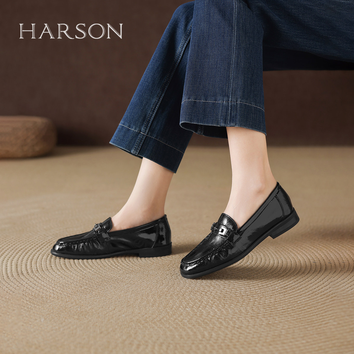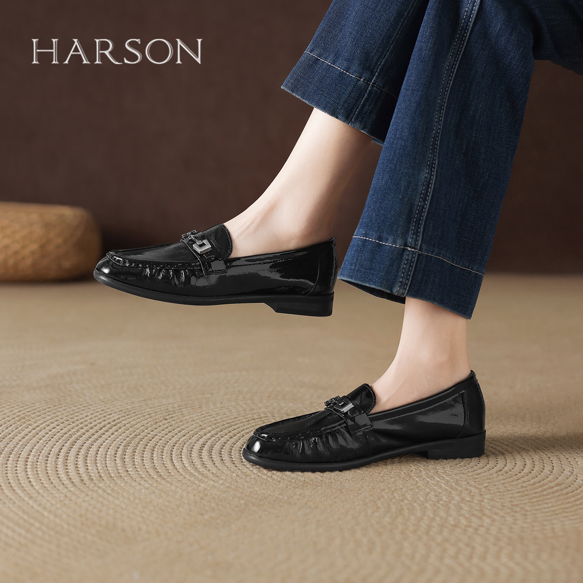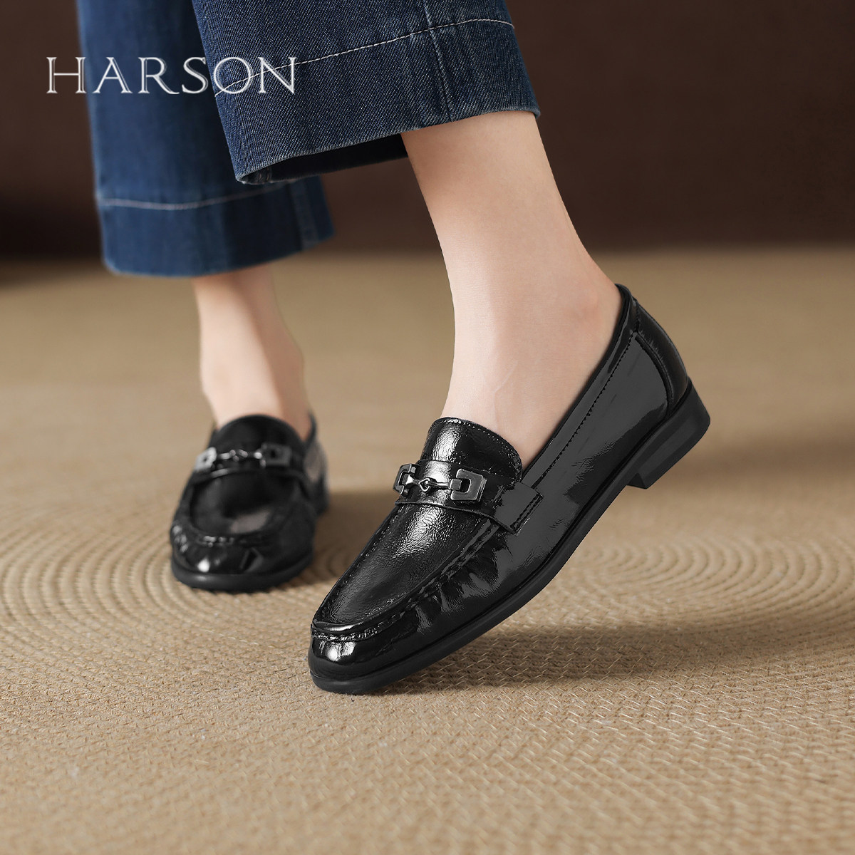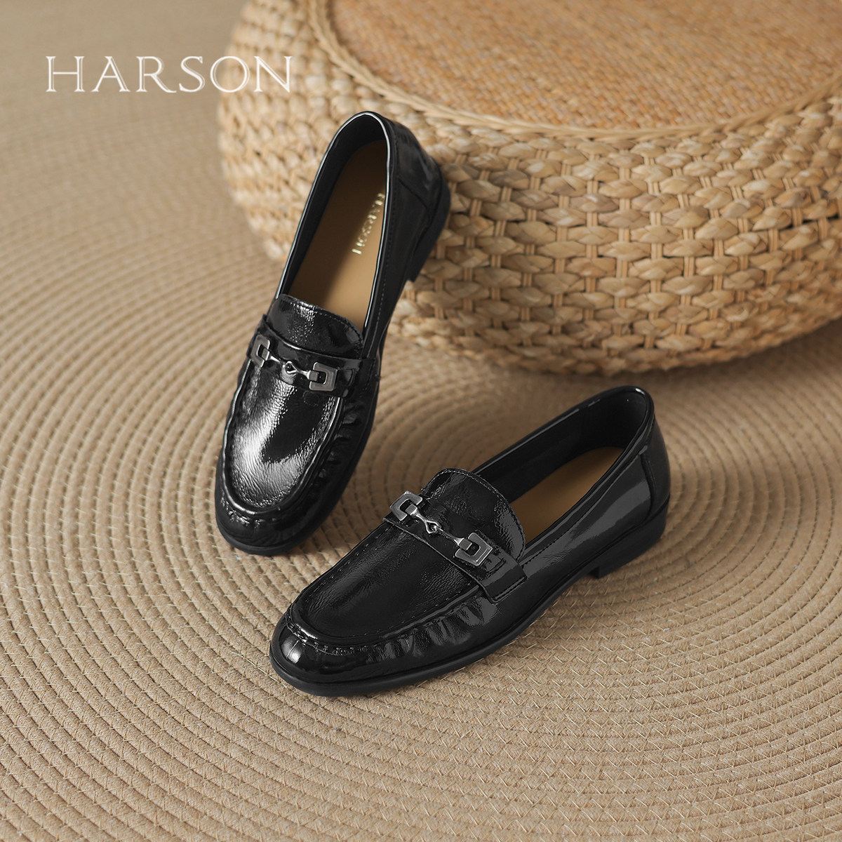 哈森一脚蹬乐福鞋女2025新款秋季英伦风小皮鞋平底单鞋女鞋