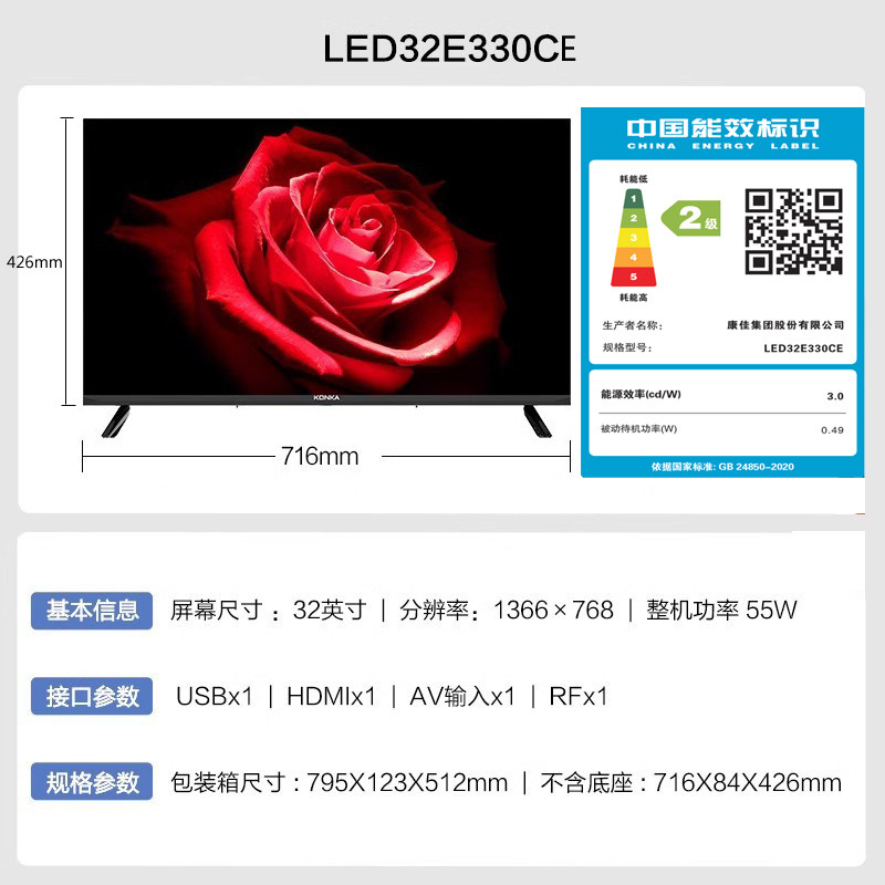康佳液晶32英寸电视机蓝光护眼家用省电平板液晶老人LED32E330CE