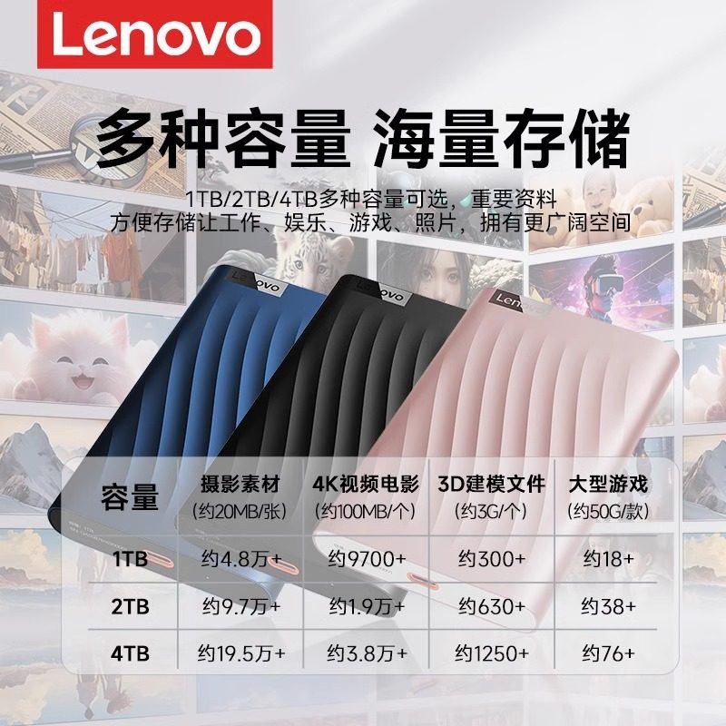 联想移动硬盘2t 高速大容量电脑手机外接置机械硬盘存储1tb正品4t