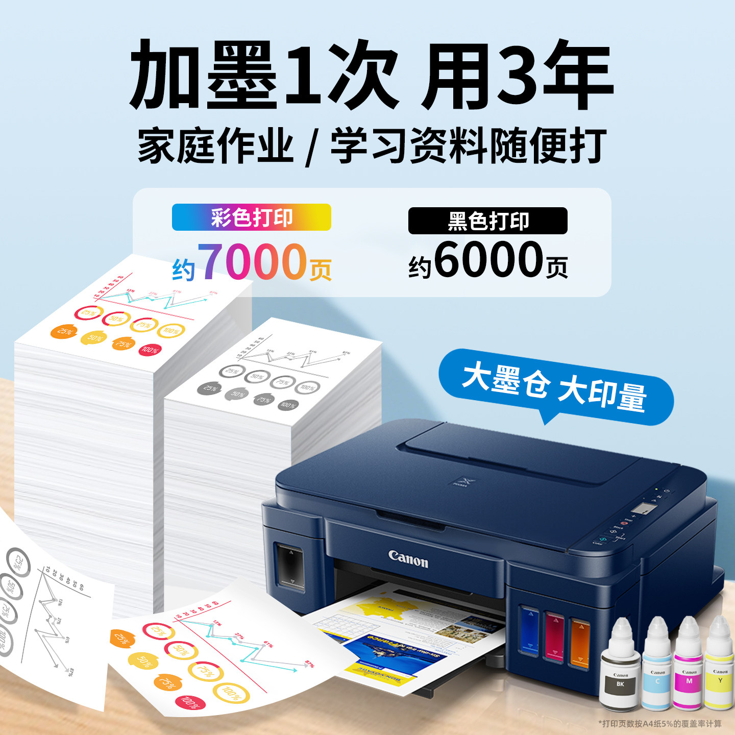 佳能G3811家用小型打印机彩色墨仓式复印扫描学生家庭可连手机无线wifi一体照片作业a4办公专用政府补贴g3810