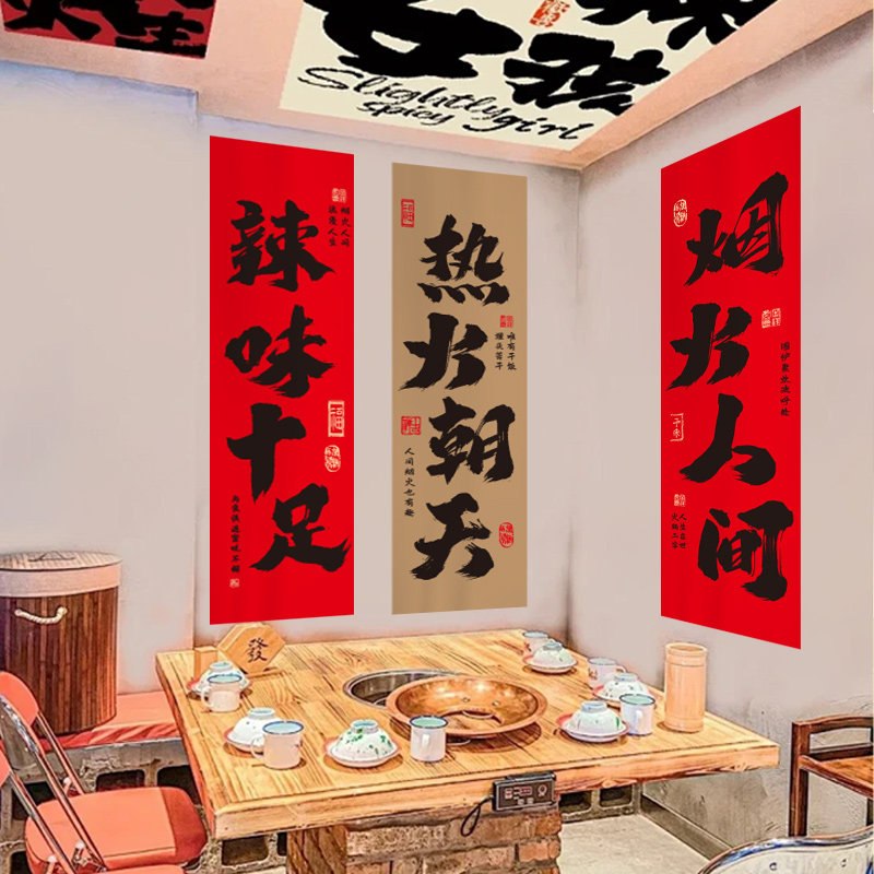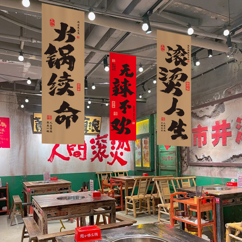 火锅店美食餐饮装饰挂布网红烧烤店挂旗露营工业风氛围感布置墙布酒吧室内墙面布帘毛笔字文化书法背景布