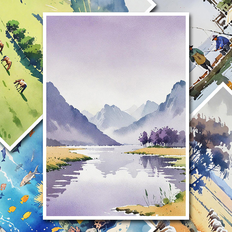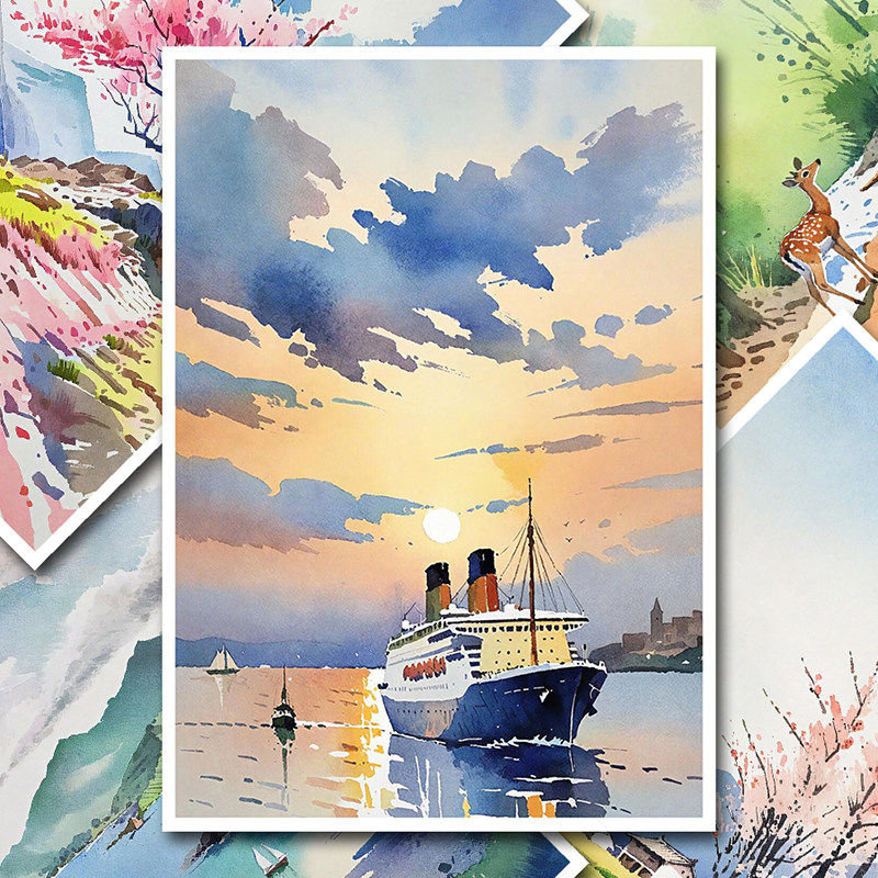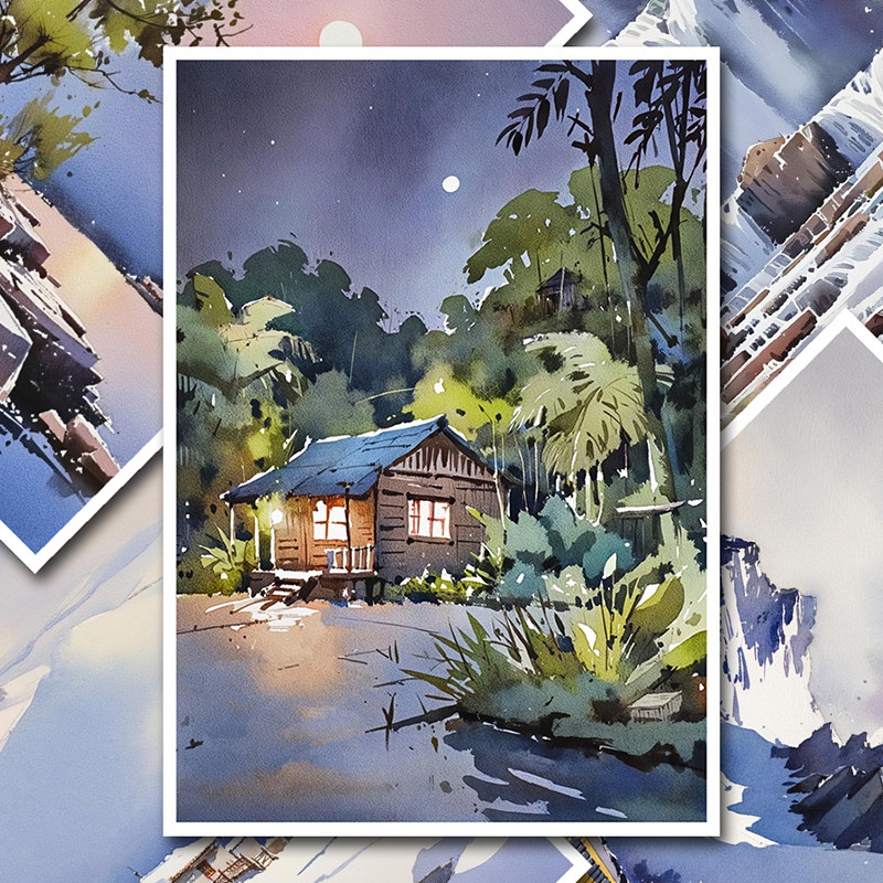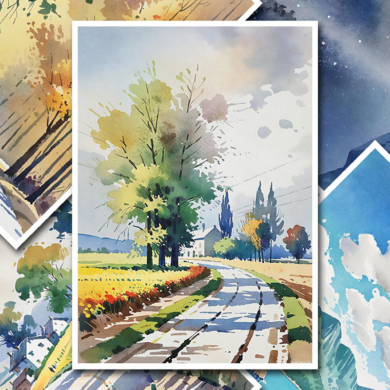 少儿成人美术绘画水彩风景花卉临摹卡简单初级中级创意范画高清A5