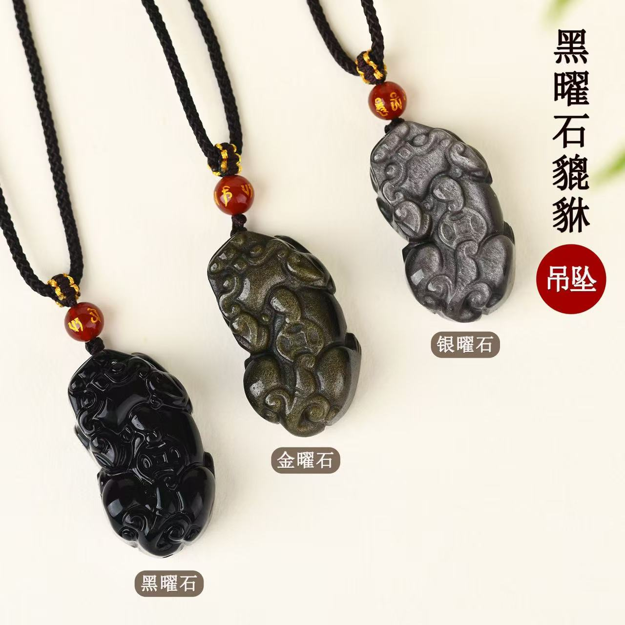 天然黑金银曜石金钱貔貅吊坠如意霸气招财貔貅项链绳挂坠生日礼物