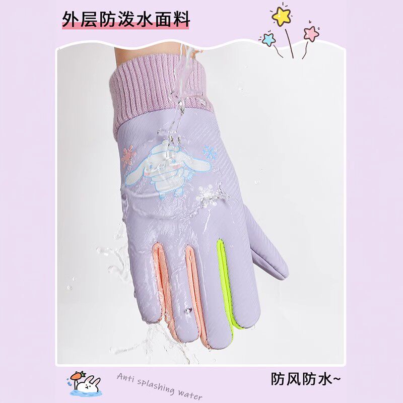 hellokitty三丽鸥滑雪手套女士冬骑行骑车防风御寒加厚保暖棉女生