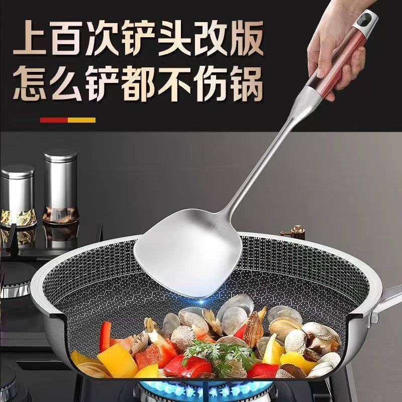锅铲不锈钢家用炒菜煎铲漏勺汤勺厨具套装加厚厨房铁铲子炒勺长柄