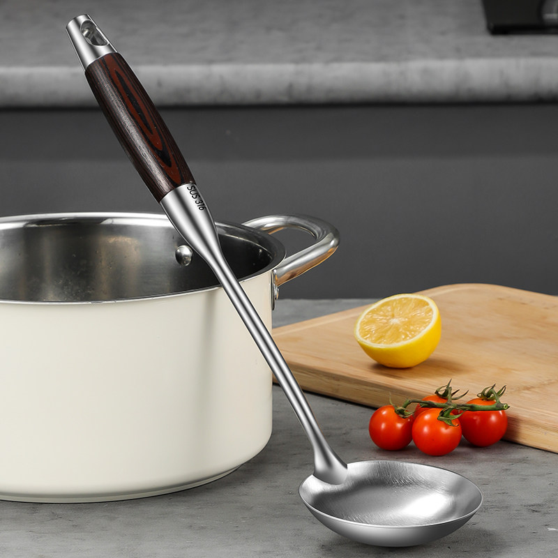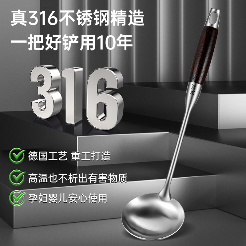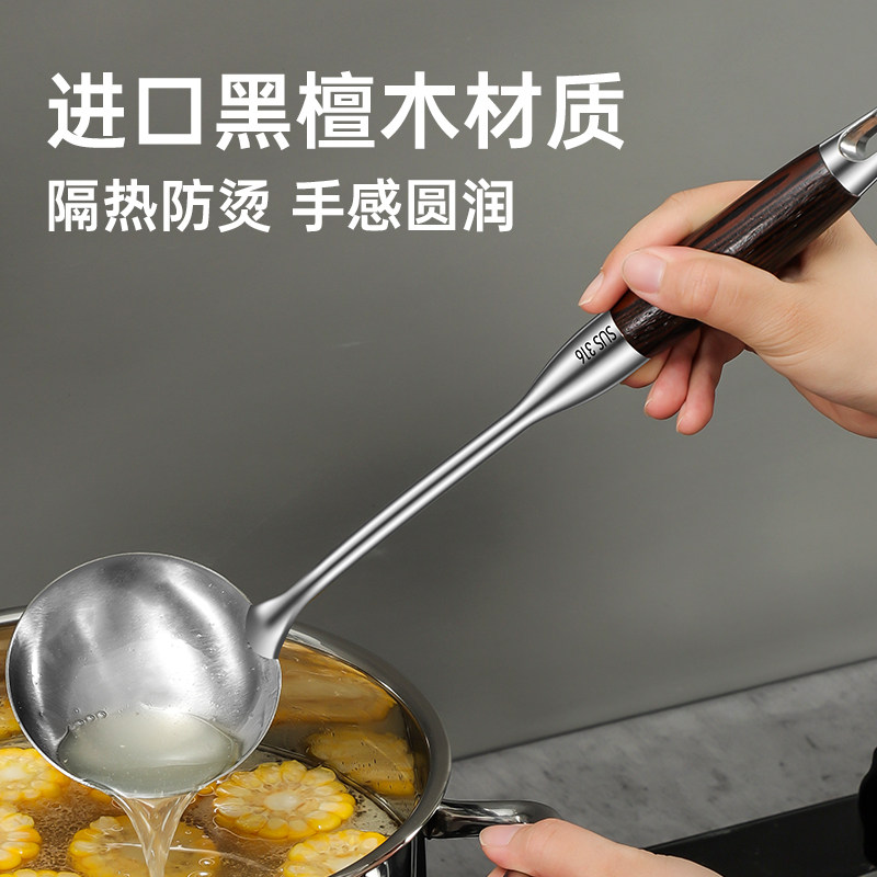 汤勺316不锈钢家用大号盛汤防烫勺子加厚厨具锅铲长木柄粥勺炒勺