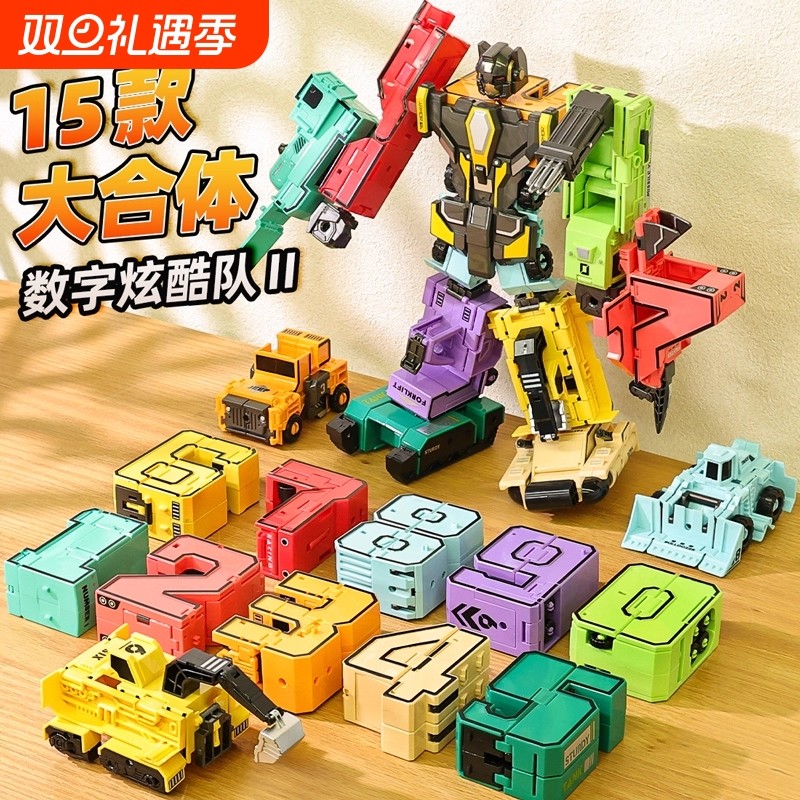 变形数字儿童益智数字机器人可变形工程组装男女孩培养趣味玩具拼