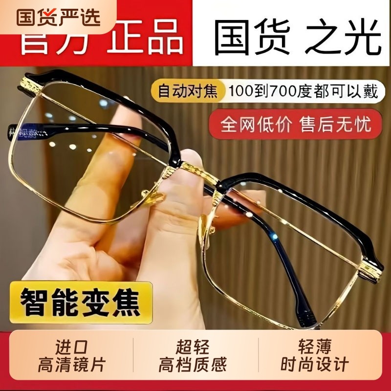智能老花镜自动调节度数变焦高清远近两用防蓝光高档超轻老花眼镜