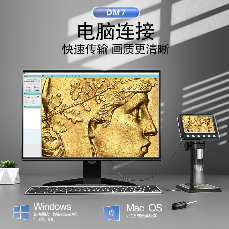 4.3寸显微镜升降支架带屏高清显微镜1000倍数码显微镜检测主板维修工业放大镜手机维修