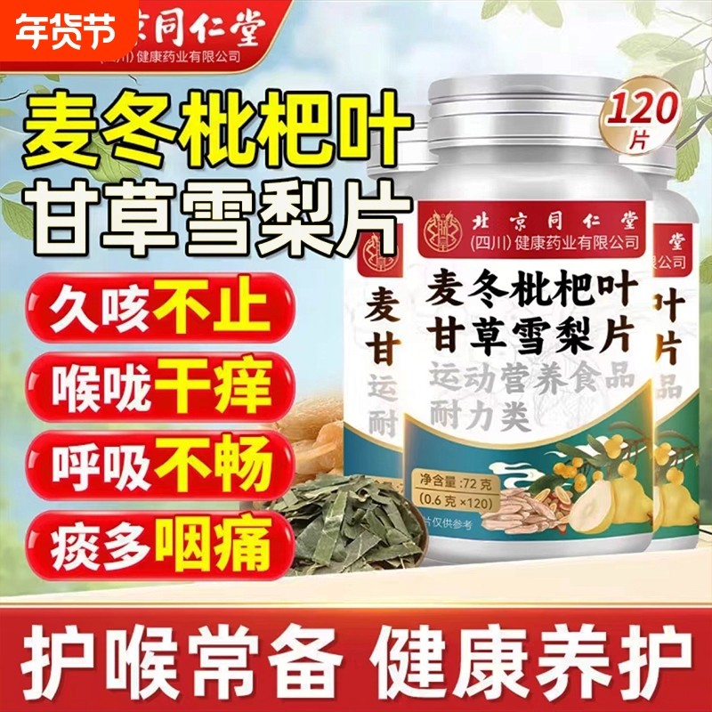 北京同仁堂麦冬枇杷叶甘草雪梨片护嗓玉竹直播同款官方旗舰店正品