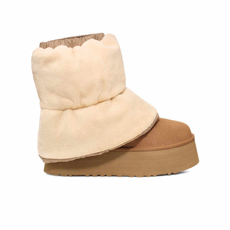 内增高~桑坡真皮厚底羊毛雪地靴女加绒保暖东北棉靴秋冬季短筒靴