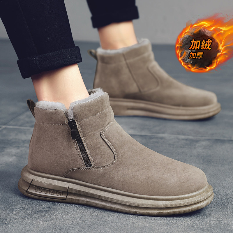 雪地靴棉鞋男士冬季加绒加厚保暖皮毛一体高帮马丁短靴一脚蹬灰色