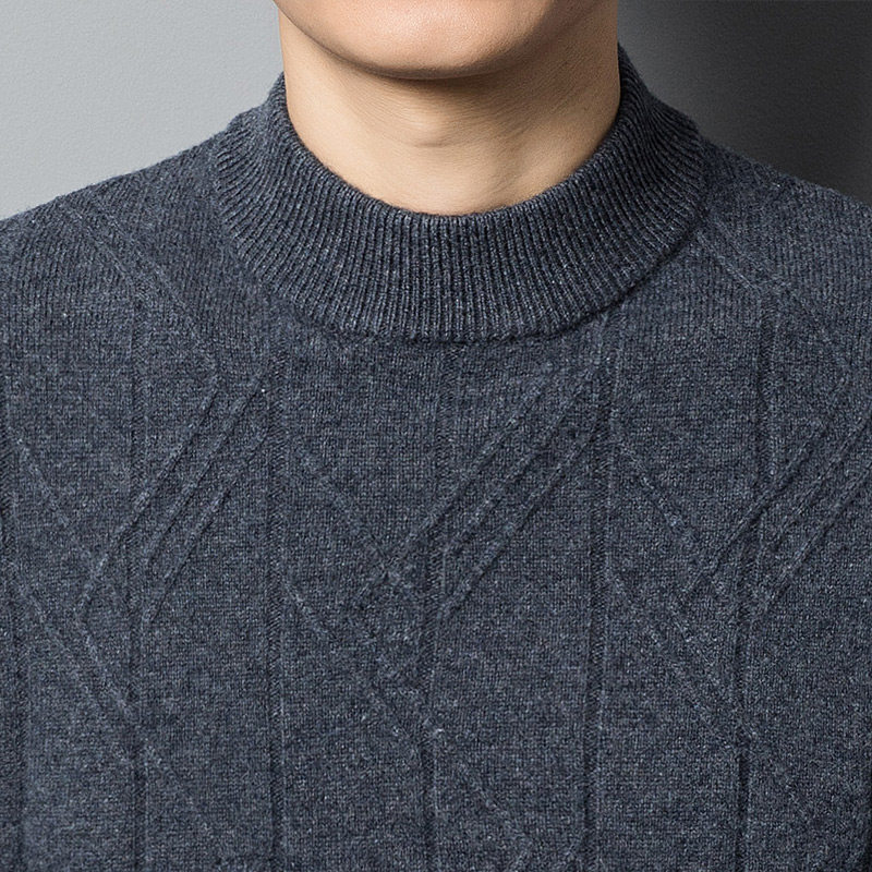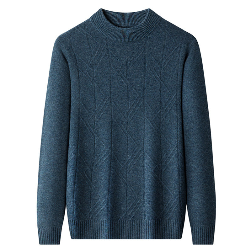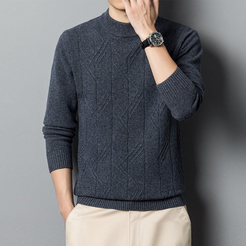 鄂尔多斯市半高领100%纯羊毛衫男休闲中厚保暖毛衣针织打底羊绒衫