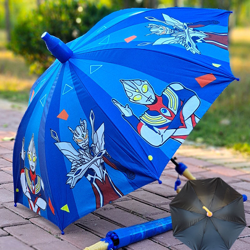 赛罗新款耐用安全晴雨两用黑胶盖子盖帽中大童上学超轻便儿童雨伞