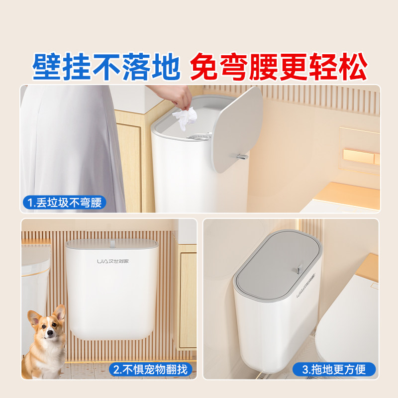 汉世刘家卫生间垃圾桶壁挂式家用厨房厕所带盖夹缝纸篓挂式卫生桶