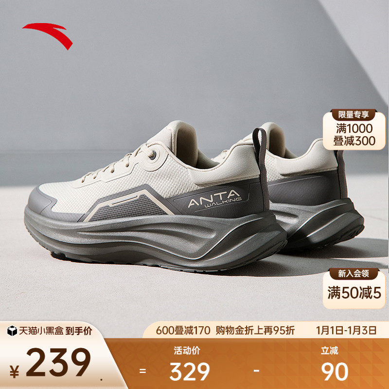 安踏漫步丨轻质缓震皮面加绒跑步鞋女款舒适轻便软底运动鞋休闲鞋