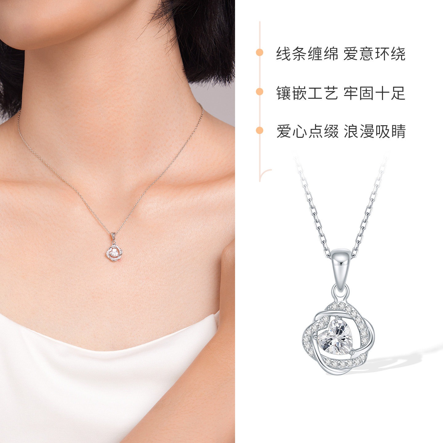 六桂福珠宝S925纯银一见倾心甜美清新锁骨控圣诞礼物送女友送闺蜜