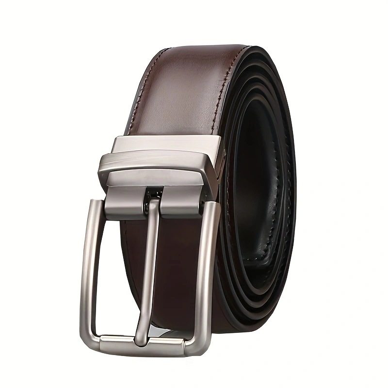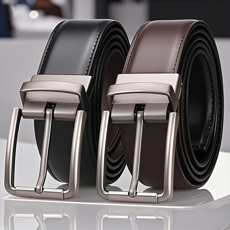 无印针扣男士皮带牛皮商务正装年轻人韩版学生休闲裤腰带.双面