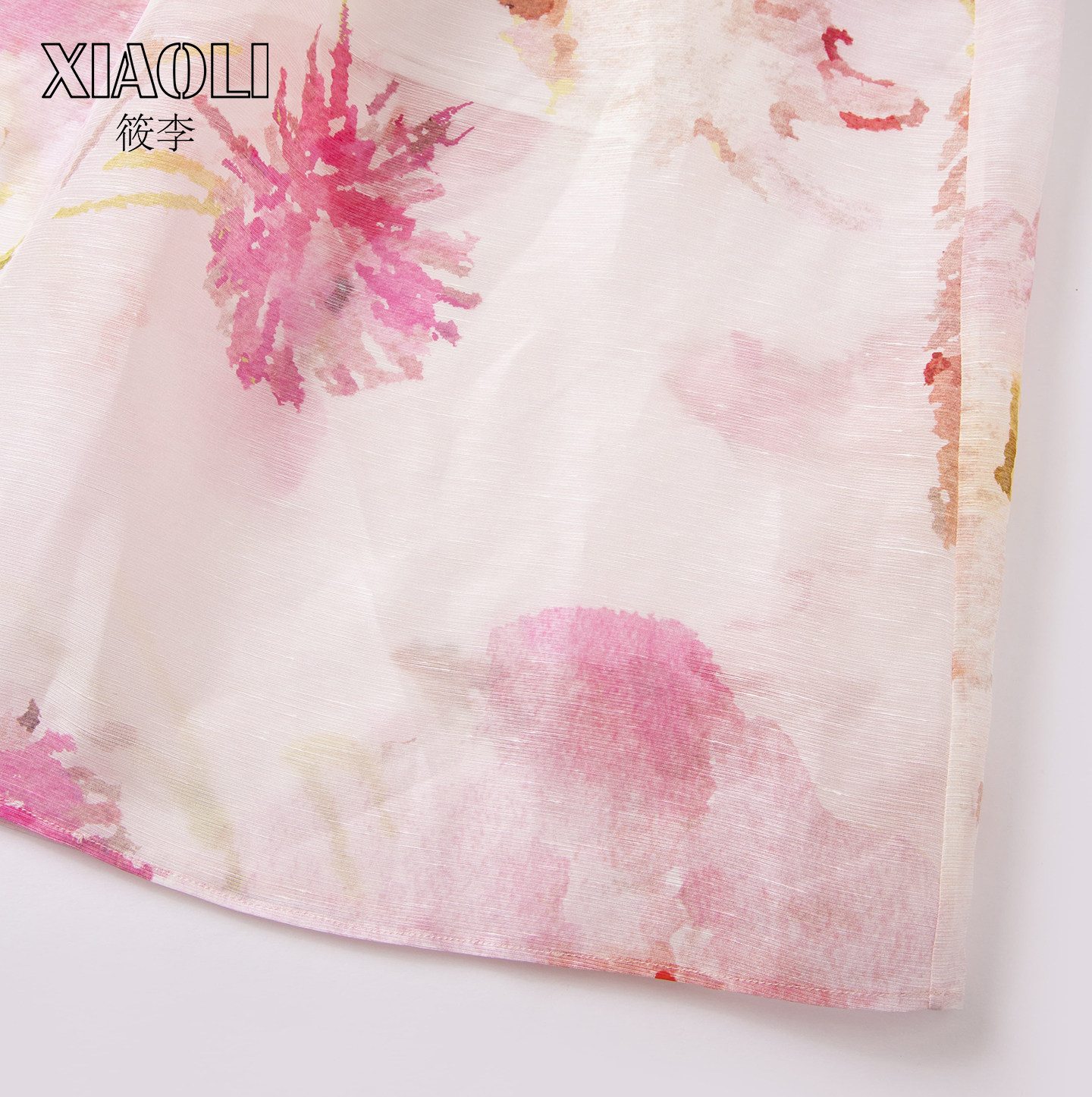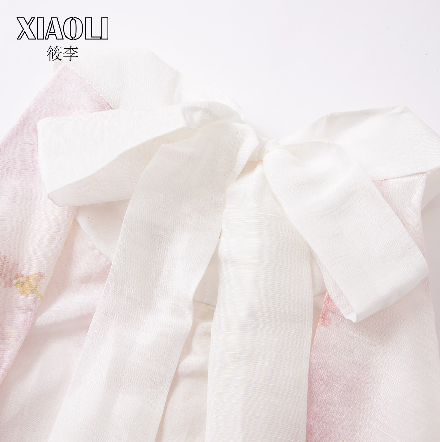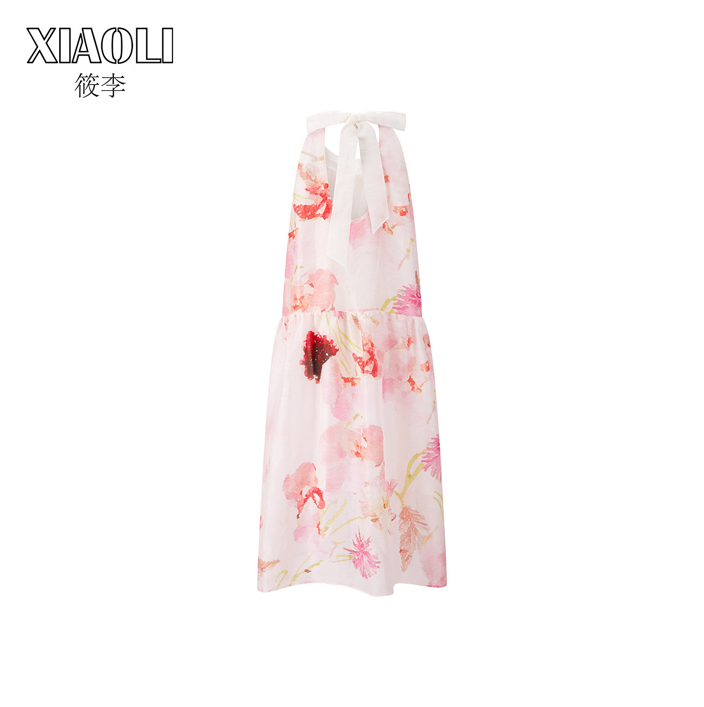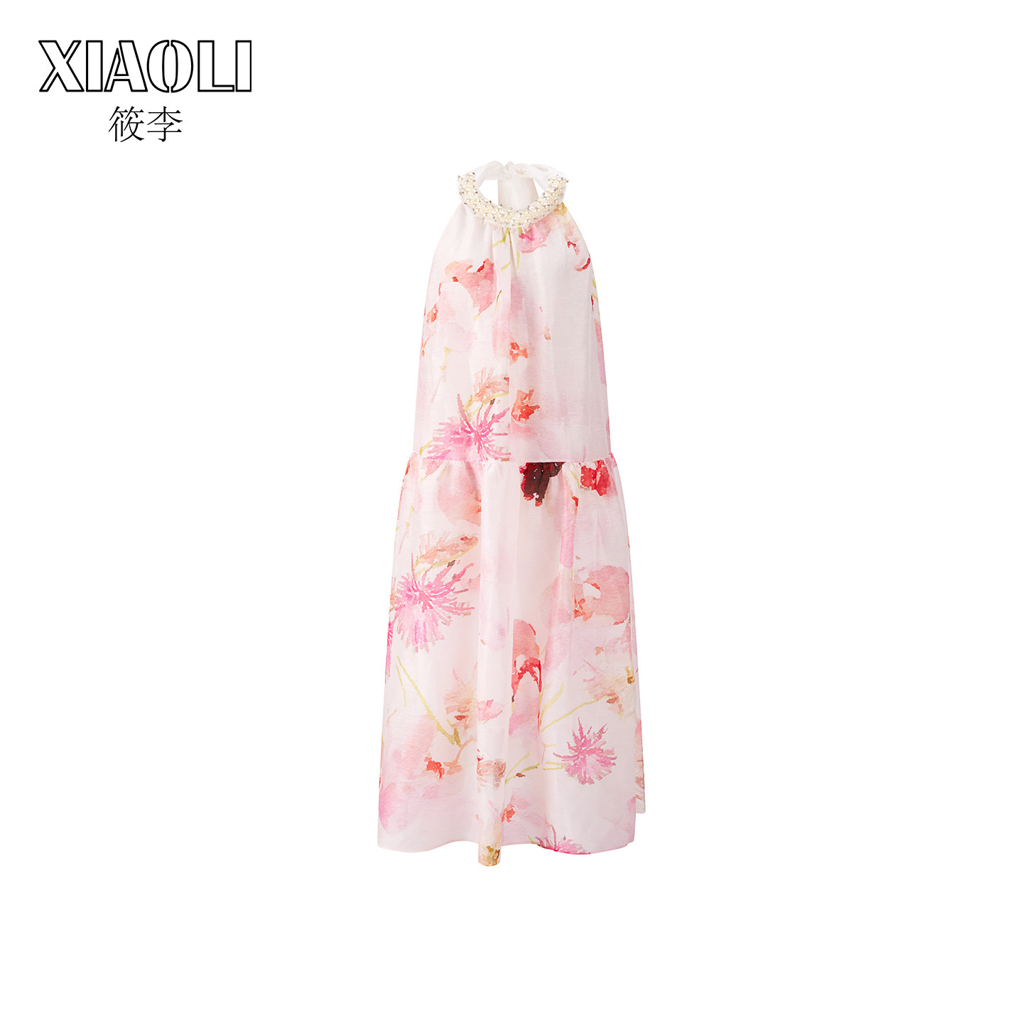 【XIAOLI筱李】甜美度假风优雅粉色印花挂脖无袖连衣裙女25秋新品