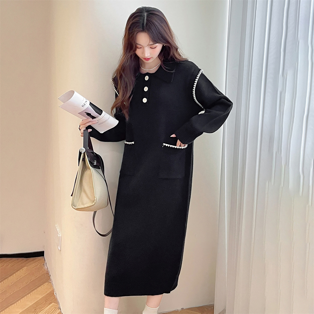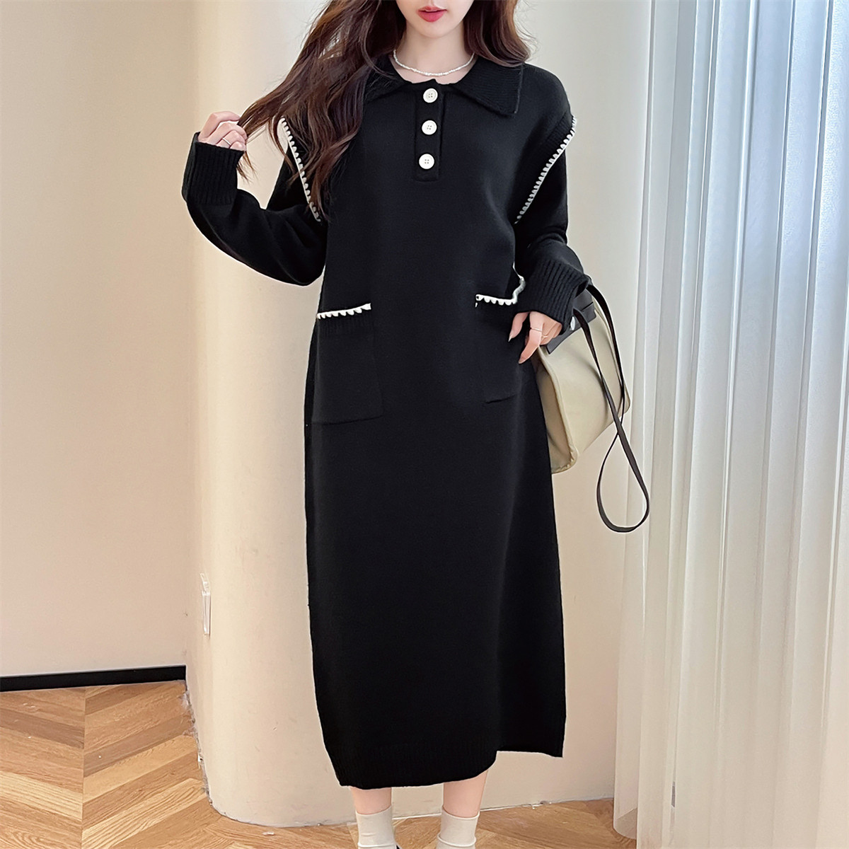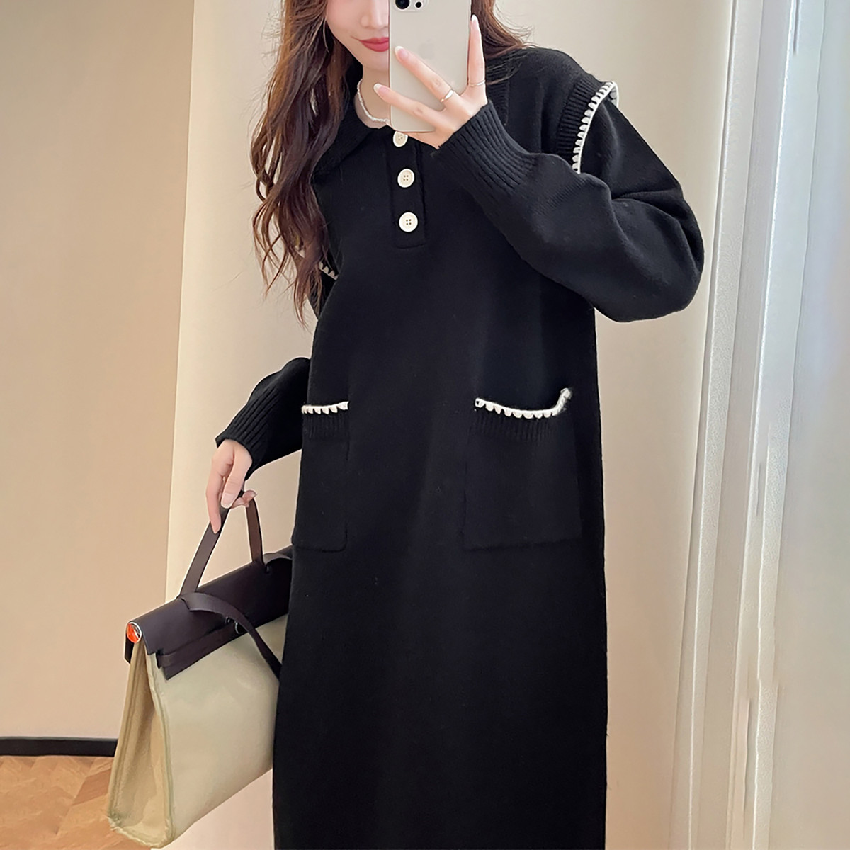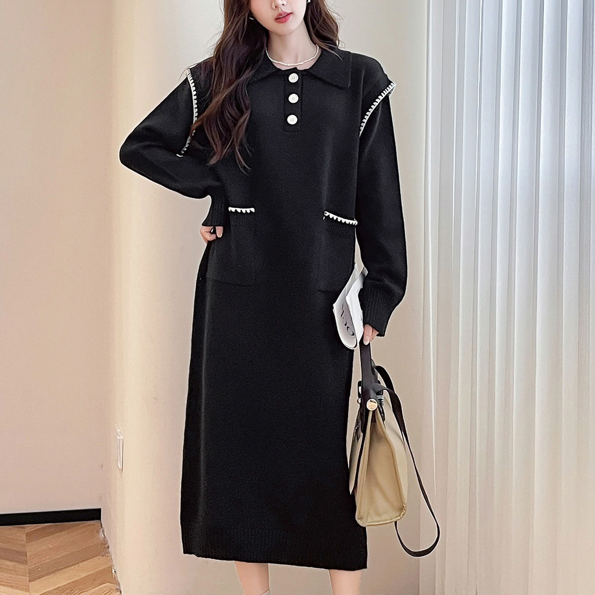 唐狮秋冬休闲舒适翻领连衣裙甜美风宽松超好看温柔系裙子TM