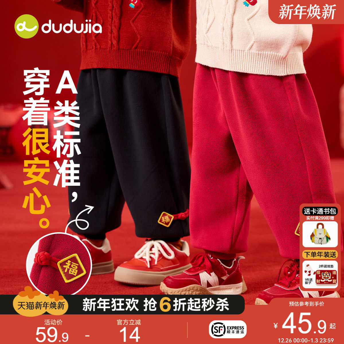 嘟嘟家宝宝唐装裤子红色冬季儿童拜年服长裤加厚男童喜庆礼服冬装