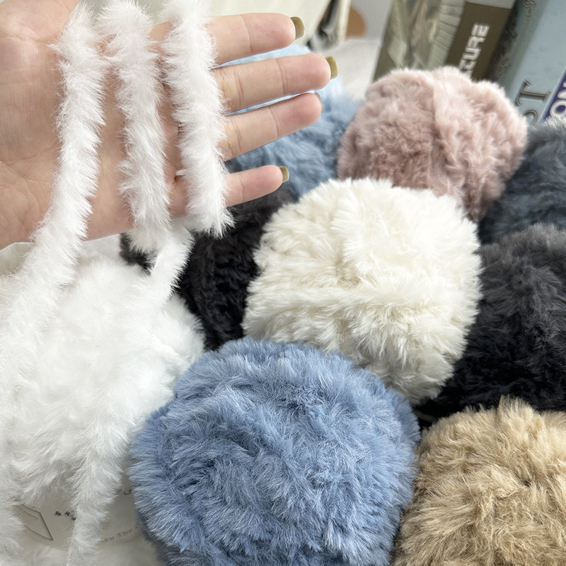 皮草线皮毛纱线仿水貂绒粗毛线团手工diy编织帽子围巾勾拖鞋