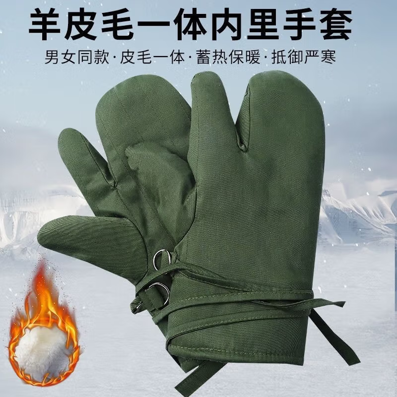 羊毛手套冬季真皮毛一体加厚内胆防寒骑车三指抗寒羊皮毛五指户外