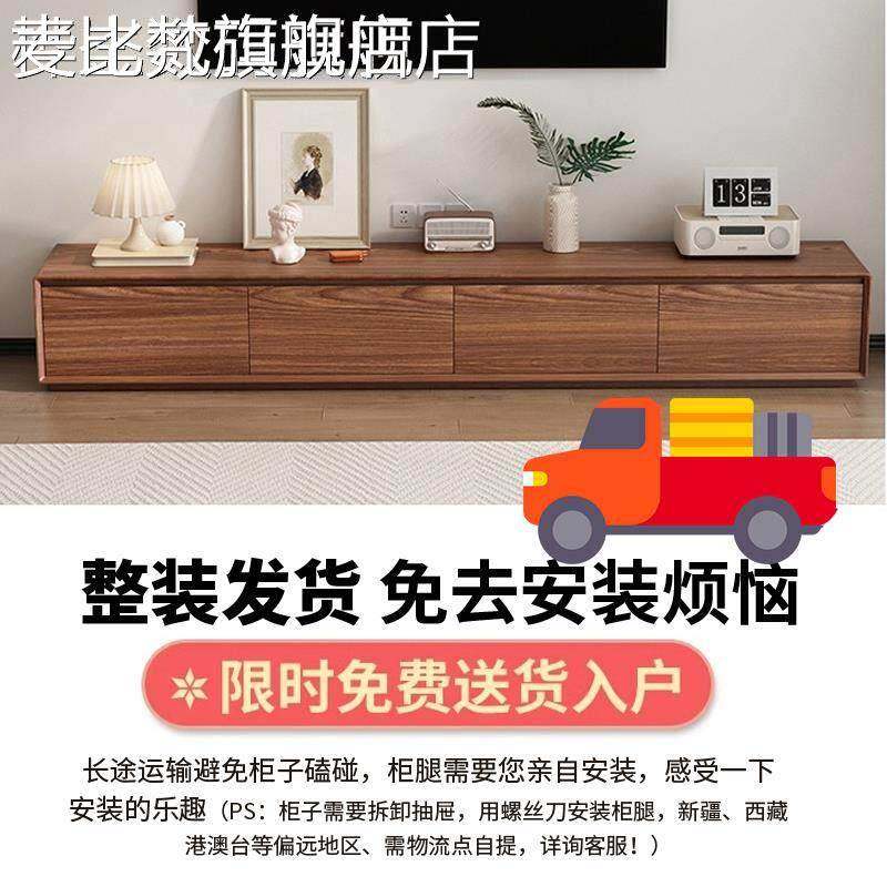 麦比梵实木电视柜胡桃木色客厅家用2025新款茶几组合小户型落地电视机柜床笠拉车