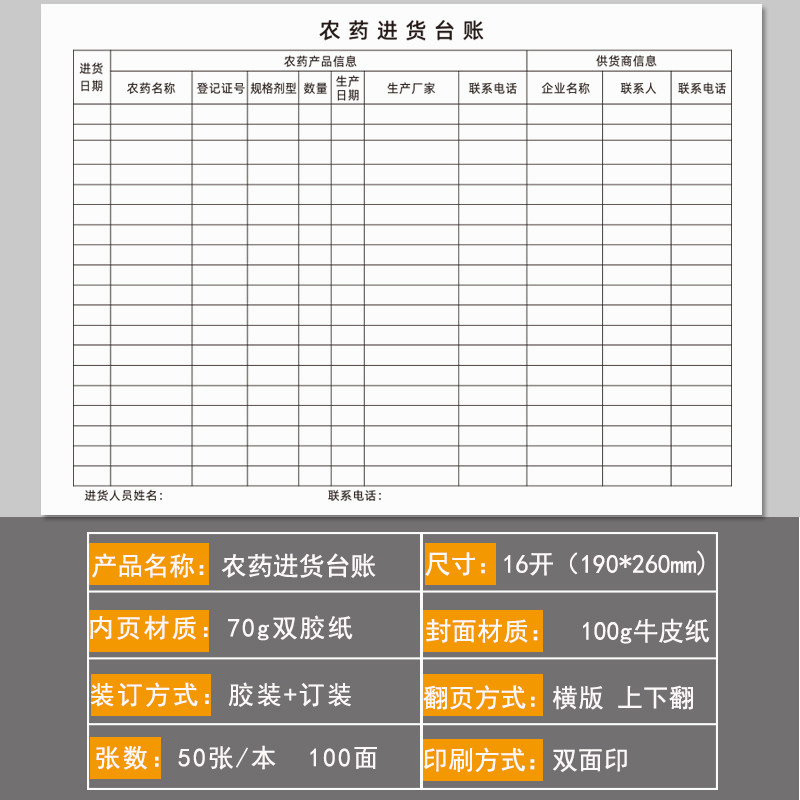 农药农资类台账本通用50张农药包装废弃物回收台账农药进货销售台账本肥料种子种苗购入明细登记表可定制