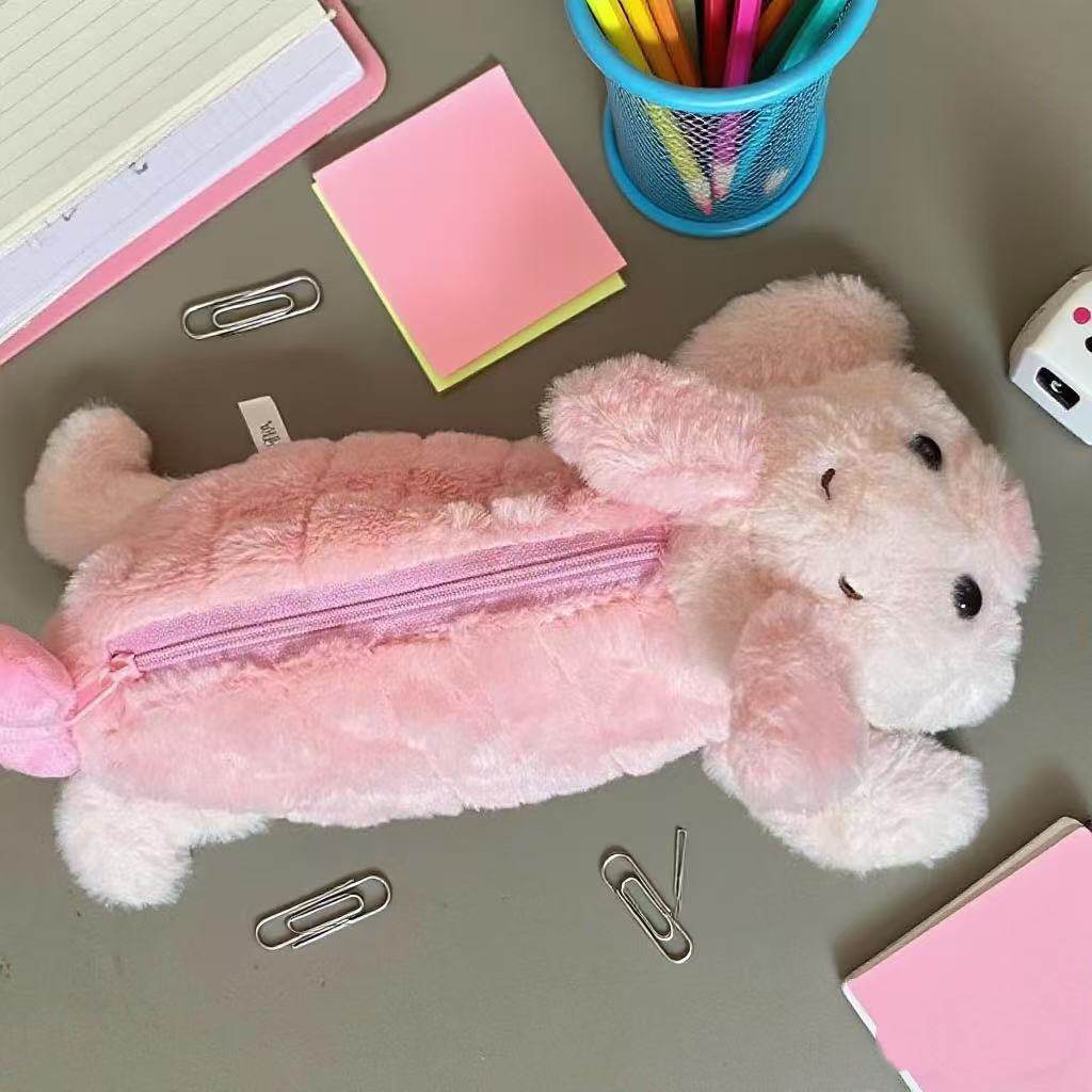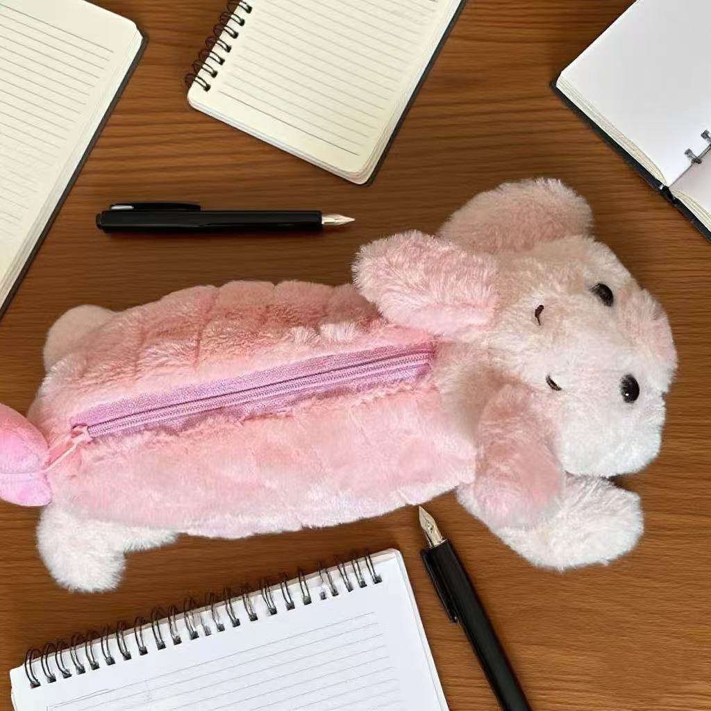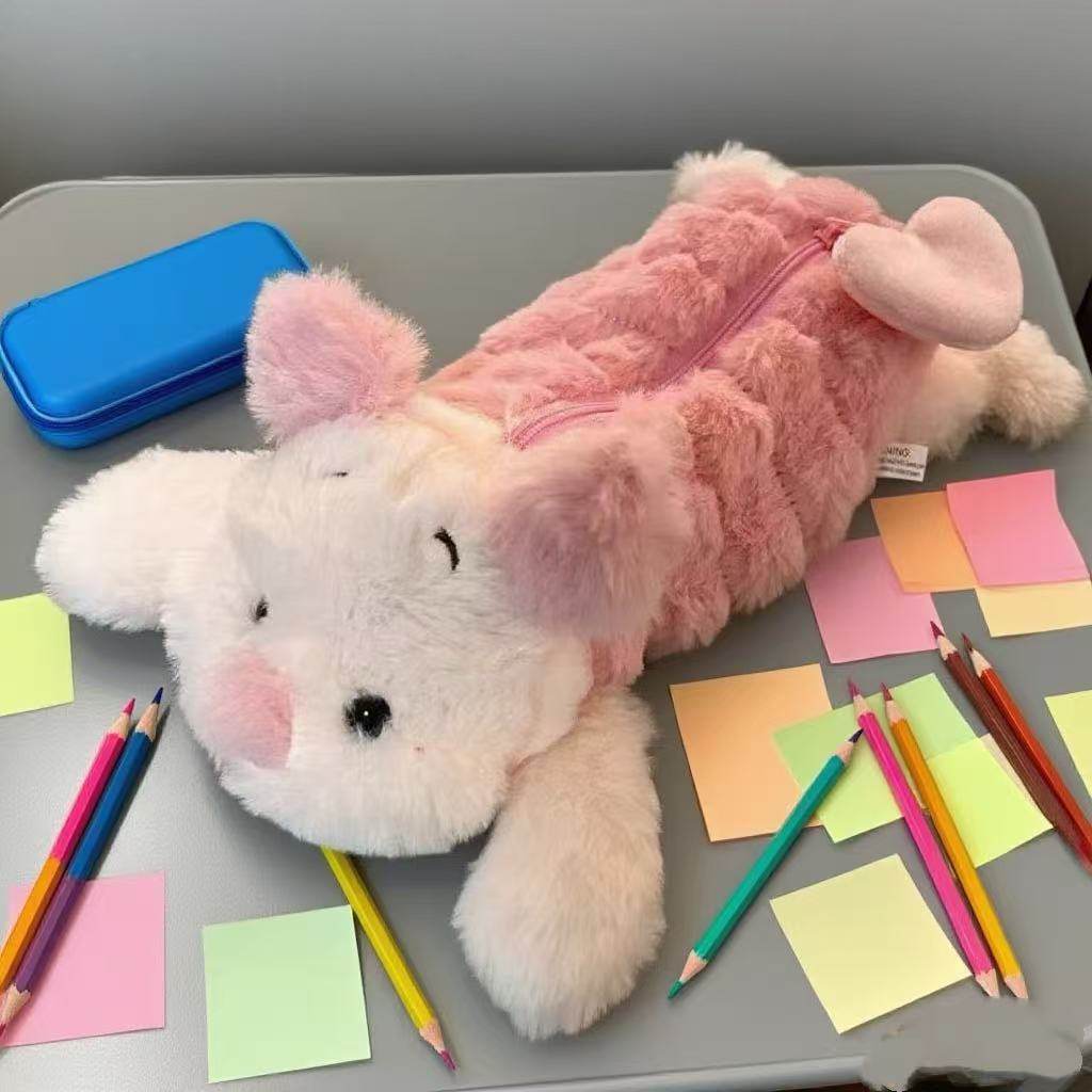 可爱卡通皮杰猪毛绒笔袋公仔造型收纳袋学生大容量文具笔盒玩偶
