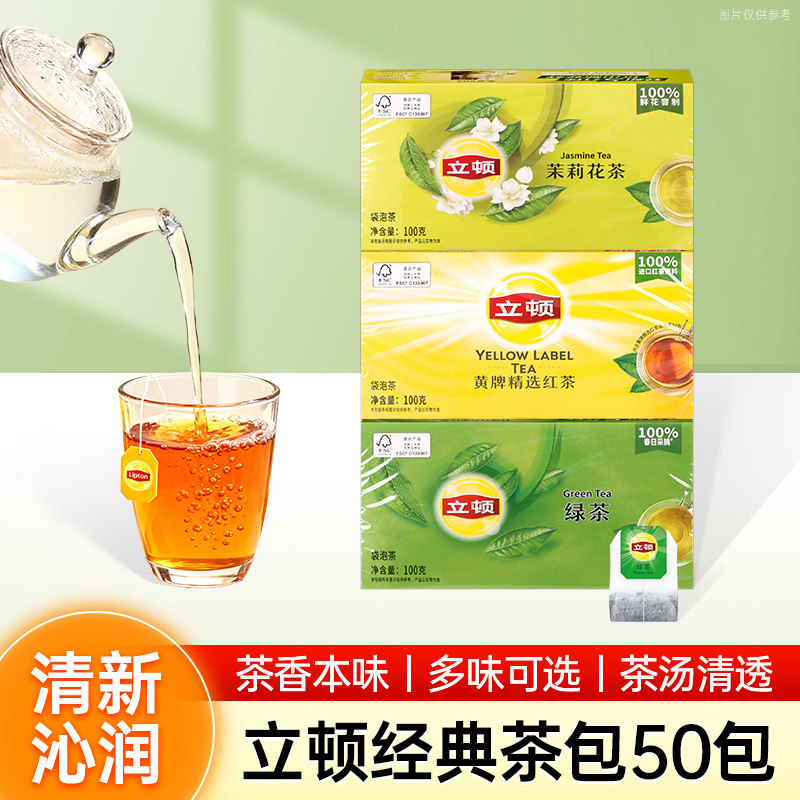 立顿红茶袋泡茶S50红茶绿茶茉莉花茶立顿茶包100g/盒商用制作奶茶