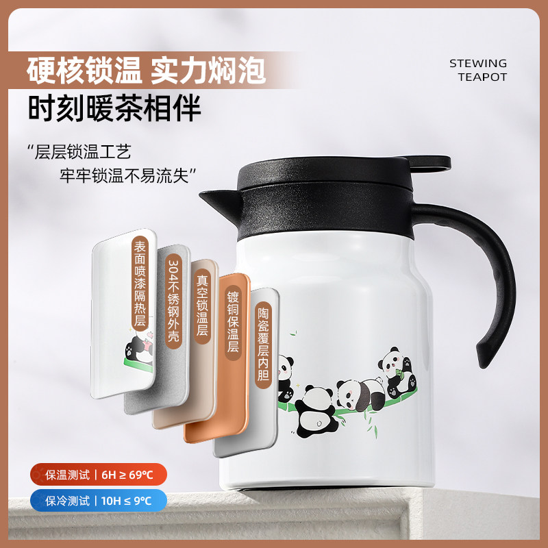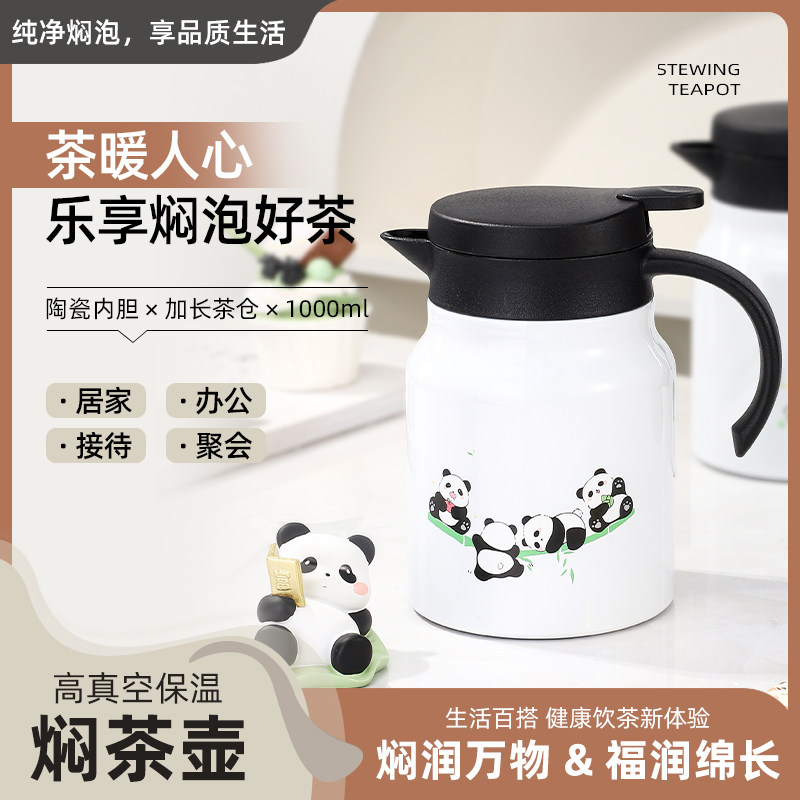 唐斯新款陶瓷内胆熊猫保温壶家用大容量茶水分离泡茶闷茶焖烧茶壶