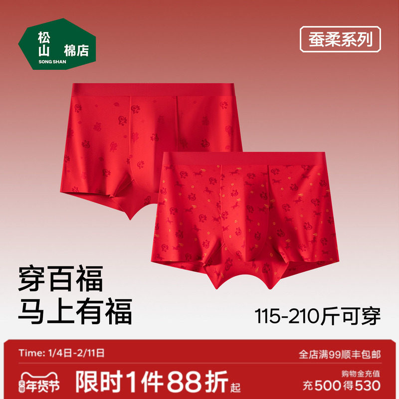 松山棉店百福新婚男士平角内裤60支大红色本命年红运莫代尔内裤男