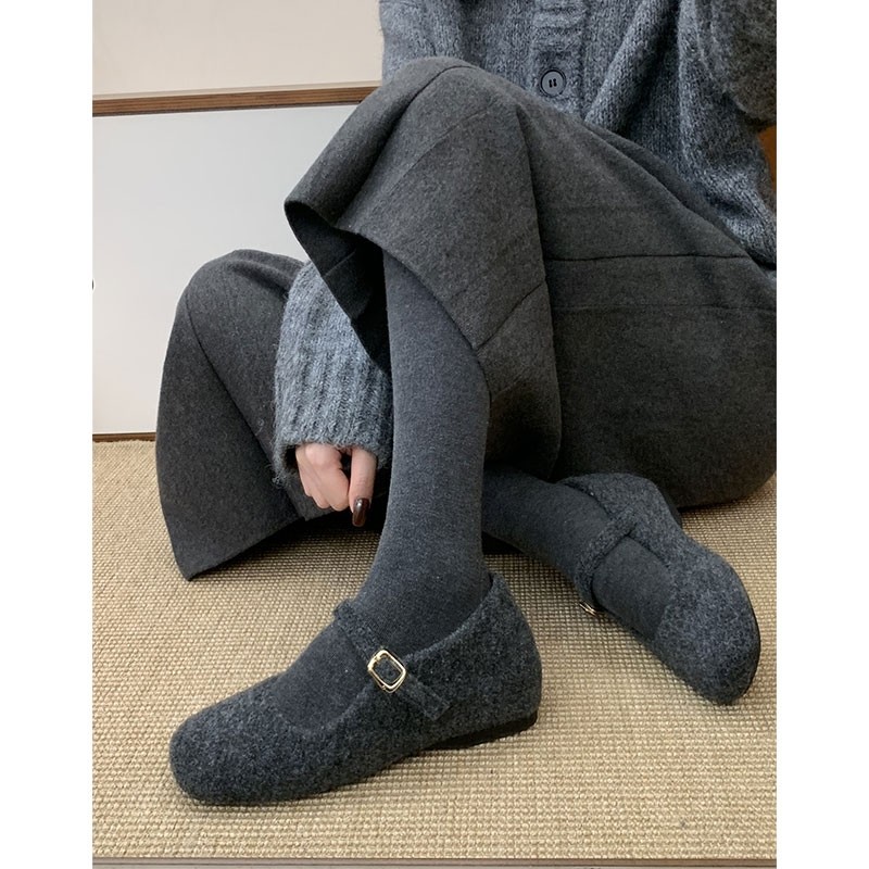 内增高玛丽珍毛毛鞋女冬外穿新款韩版灰色呢子单鞋女厚底加绒棉鞋