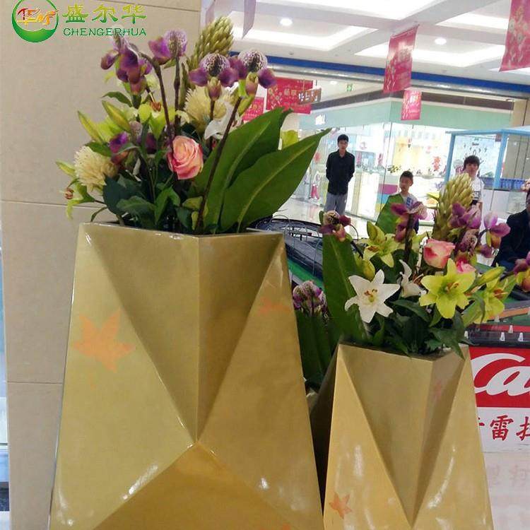 玻璃钢菱形几何组合花盆美陈落地大花瓶商场酒店大堂装饰花器摆件