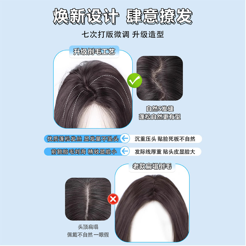 假发全头套蕾丝自然无痕中分刘海黑长直女长发假发套发丝波浪蓬松