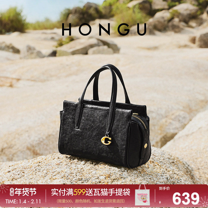 红谷包包2025新款植鞣牛皮单肩手提包真皮通勤托特包斜挎女包小包