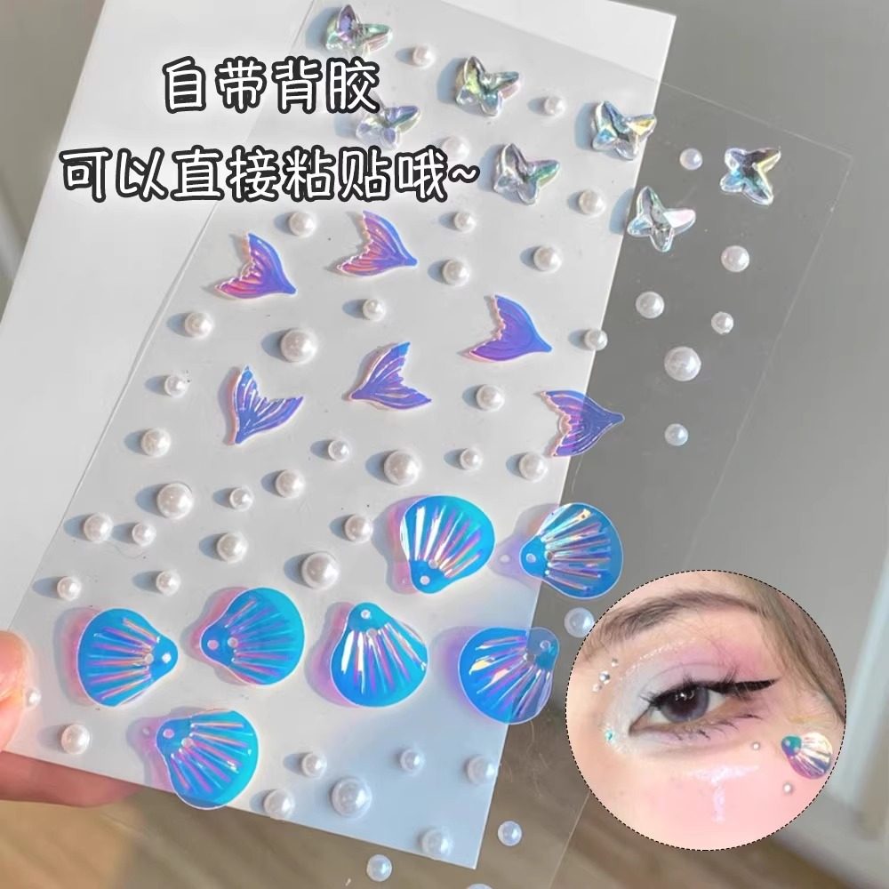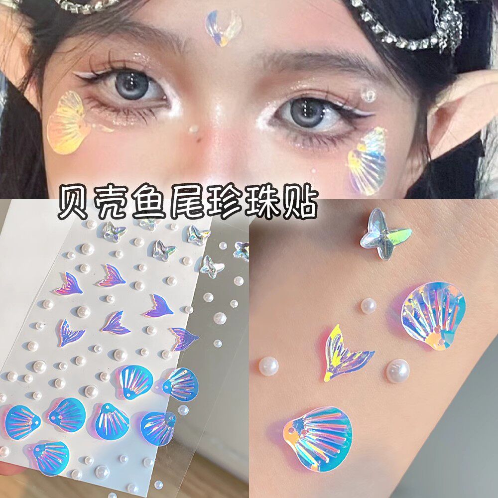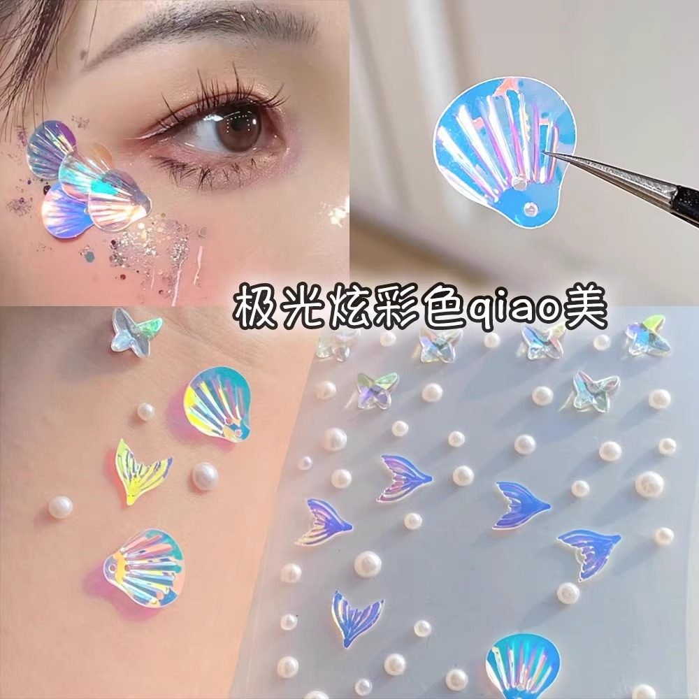 六一儿童节脸部装饰美人鱼脸贴演出化妆亮片脸上妆容极光鱼尾贝壳钻贴纸演唱会舞台妆表演专用彩妆音乐节饰品