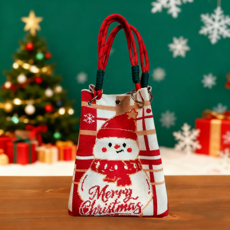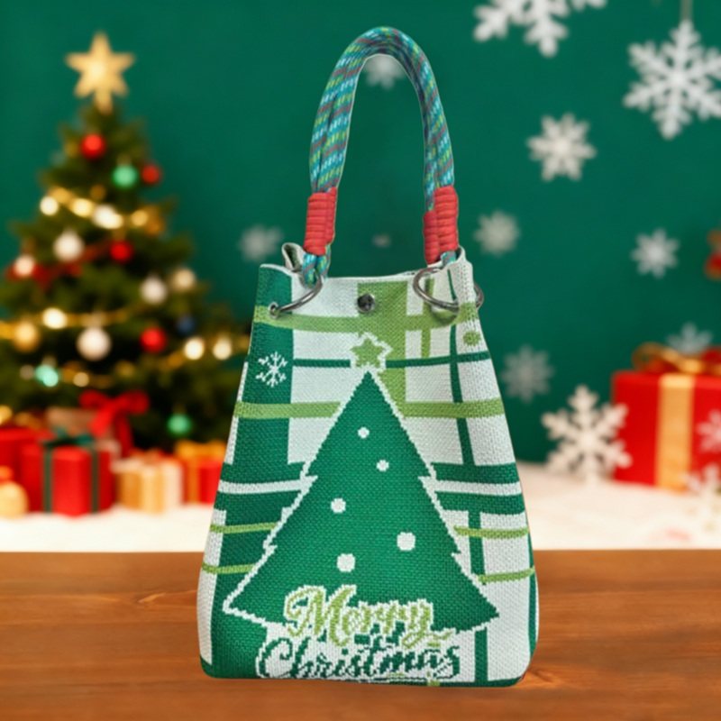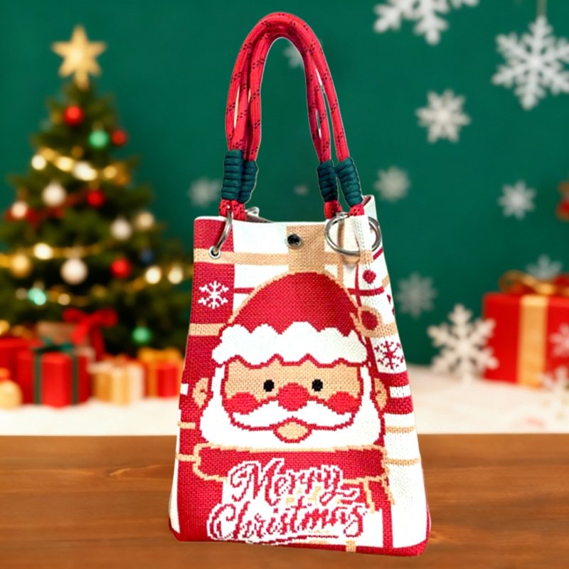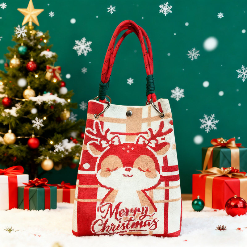 2025新款圣诞针织手提包礼物袋卡通麋鹿水桶便携大容量伴手礼包袋