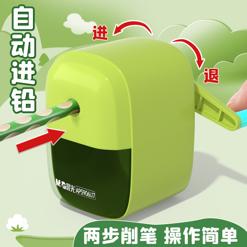 晨光卷笔刀手摇式转笔刀卷笔器儿童小学生专用铅笔刀削笔机器自动进笔刨笔器一年级幼儿园男女孩小型便携款