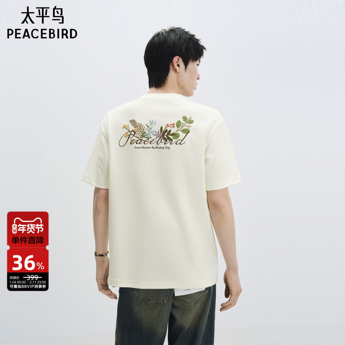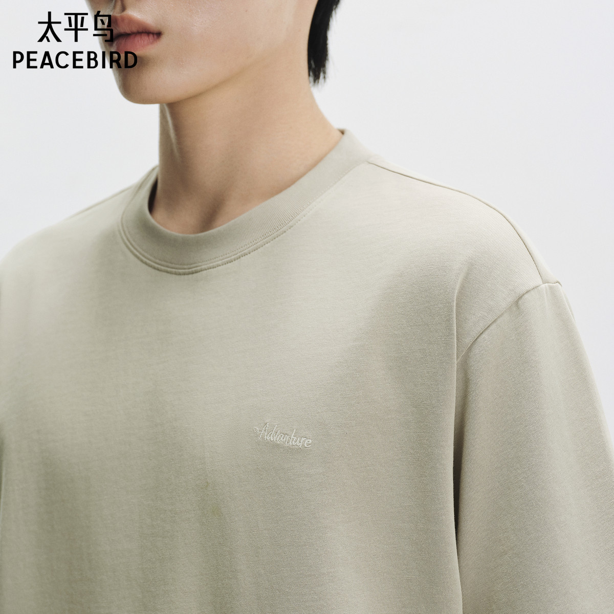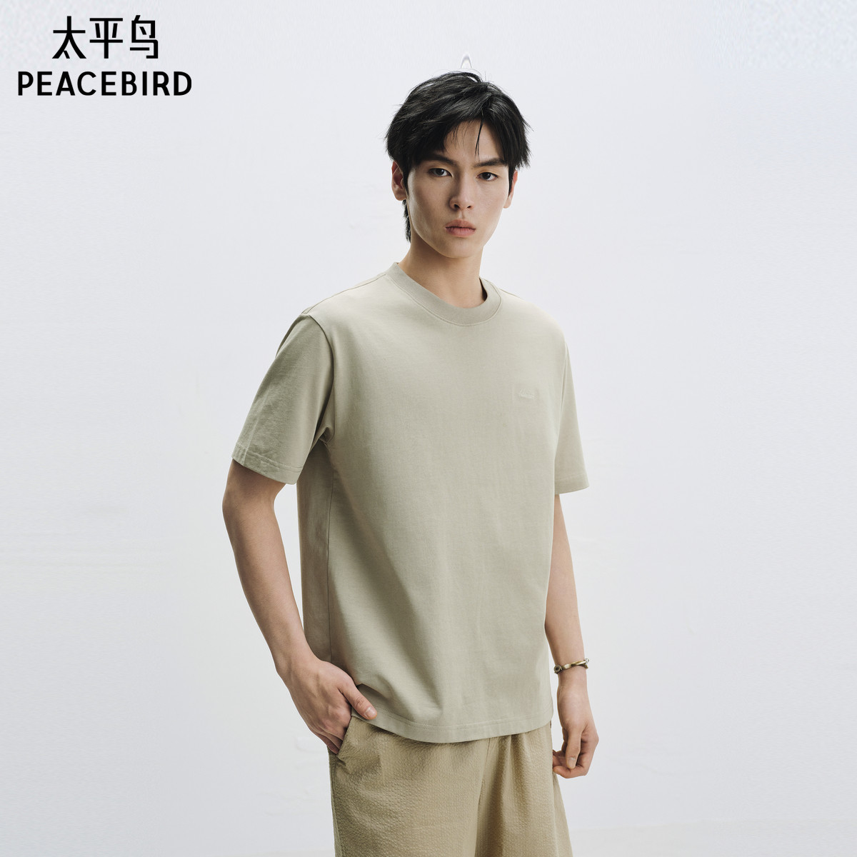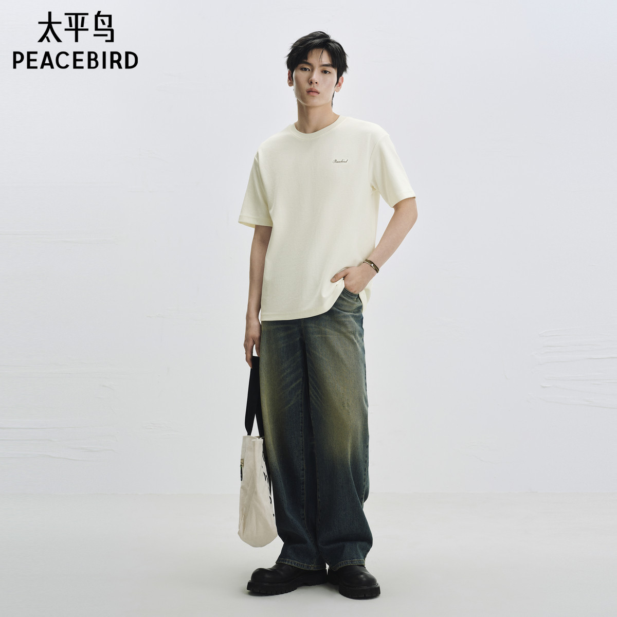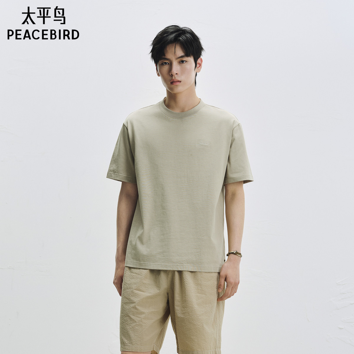 【凉感】太平鸟男装华夫格重磅短袖T恤夏季新款刺绣体恤衫斯文S